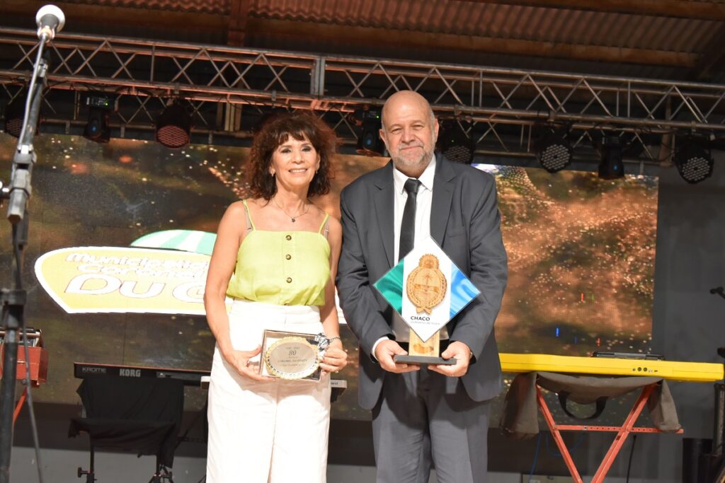 La secretaria de Municipios Beatriz Bogado participó, junto al intendente Oscar Dalmasso, del acto por el 80º aniversario de Coronel Du Graty y remarcó el avance en infraestructura en la localidad en estos últimos años. Entre otras obras, destacó el flamante Microestadio, las refacciones de la Estación Terminal de Ómnibus y del Registro Civil, más de 20 cuadras de pavimento, incluyendo las mejoras en el acceso principal a la ciudad.