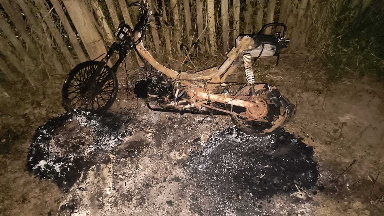 Fuentes policiales informaron que en calle 5 entre 14 y 16 del B°Sur, en un predio donde se hay una vivienda abandonada, se encontró totalmente quemada la motocicleta marca Corven Energy en la que circulaba joven como así también, distante a unos 8 metros en el mismo predio, los efectivos hallaron dos medias de distintos pares color oscura.