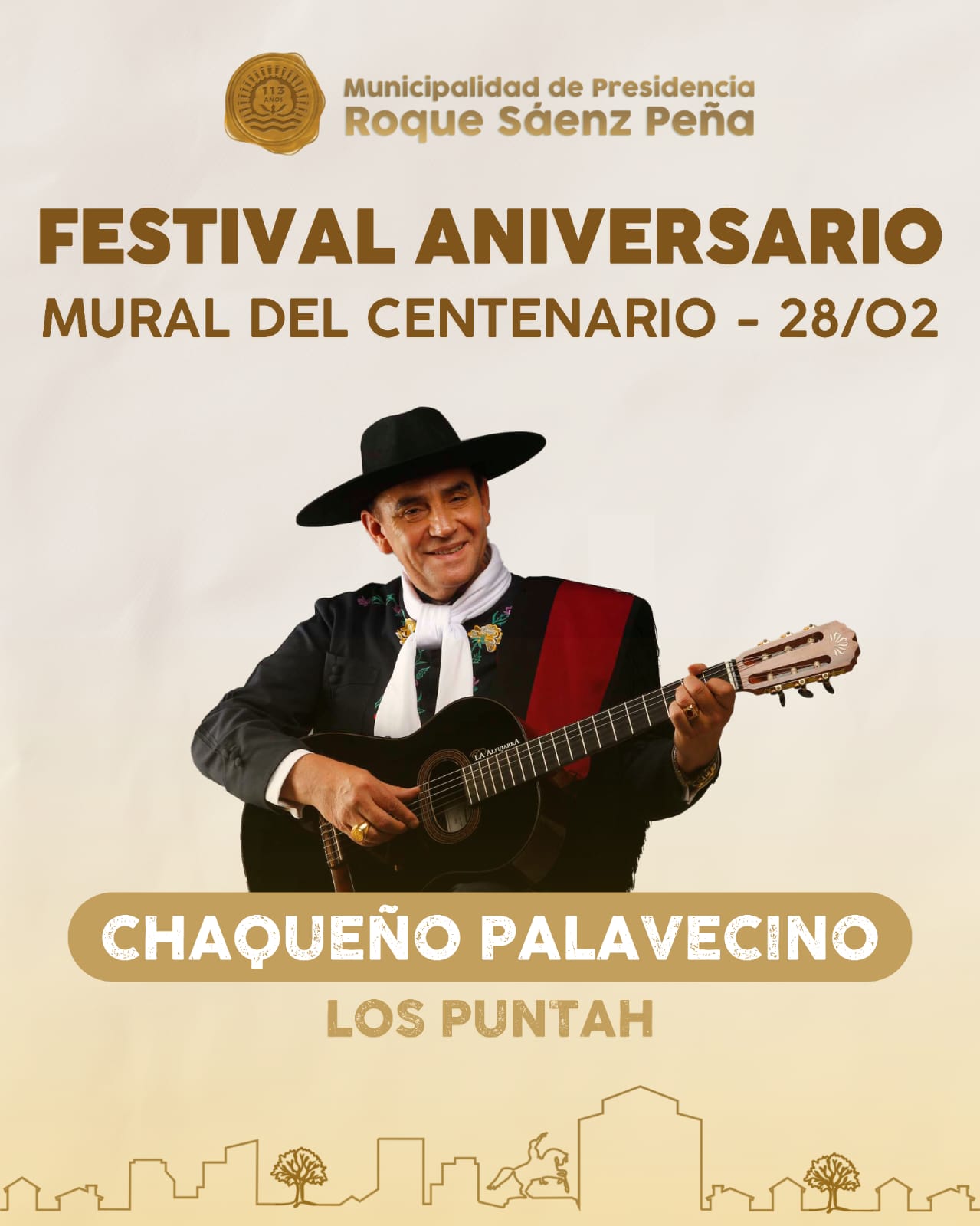 28 de Febrero: 21 horas / Festival Aniversario en el Mural del Centenario. Actuarán Los Puntah y El Chaqueño Palavecino.