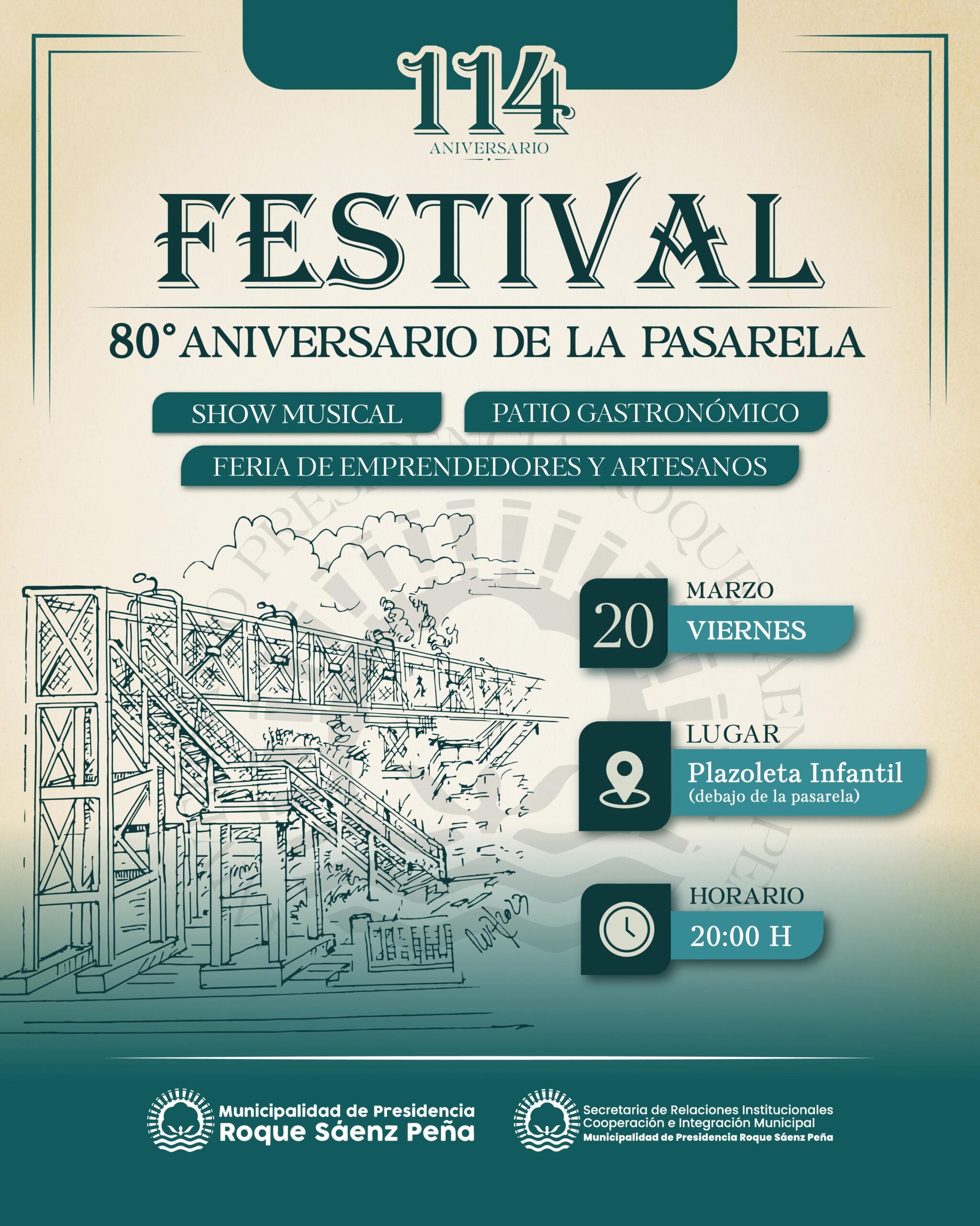 La ciudad de Presidencia Roque Sáenz Peña se prepara para conmemorar los 80 años de la emblemática pasarela con una noche especial abierta a toda la comunidad.